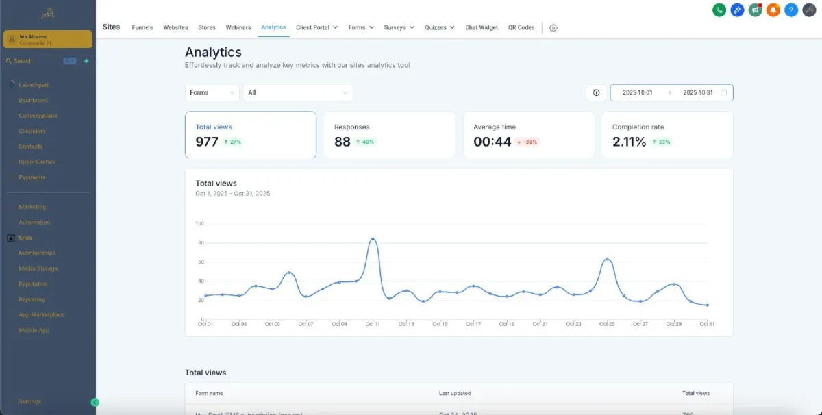 Smart data & lead tracking — see who submitted what, track form views vs submissions, and use that data to follow up, segment contacts, or trigger workflows.